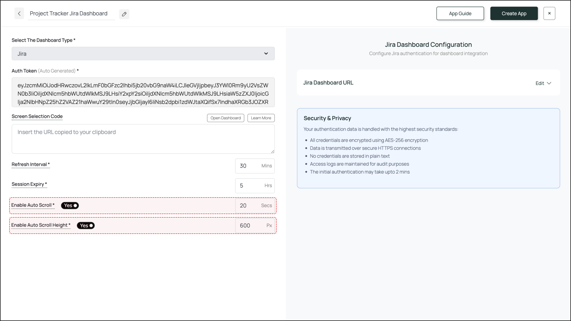 - Enable Auto Scroll: This lets you set a scroll duration in seconds. For example, if you set it to 20 seconds, the entire dashboard will scroll from top to bottom over 20 seconds.