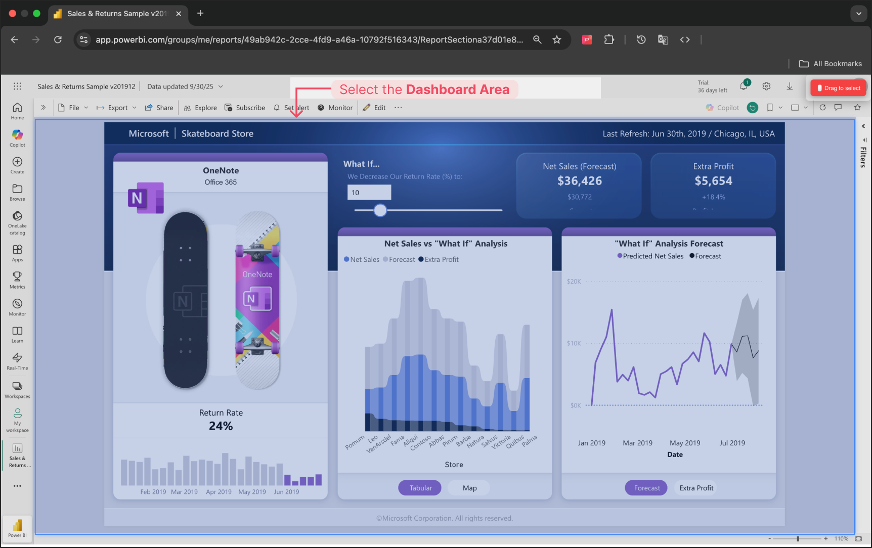 PowerBI Dashboard URL: Log in to your Power BI account and navigate to the report you want to display. Copy the entire URL from the browser's address bar and paste it here.