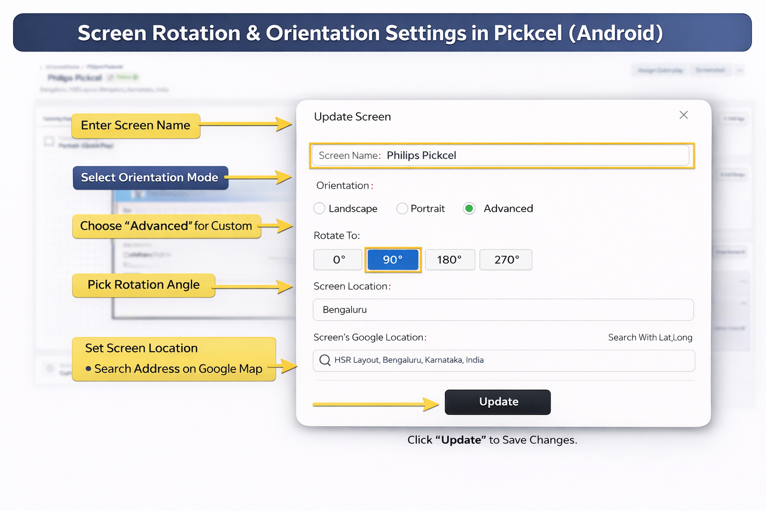 In the Update Screen window, choose:
